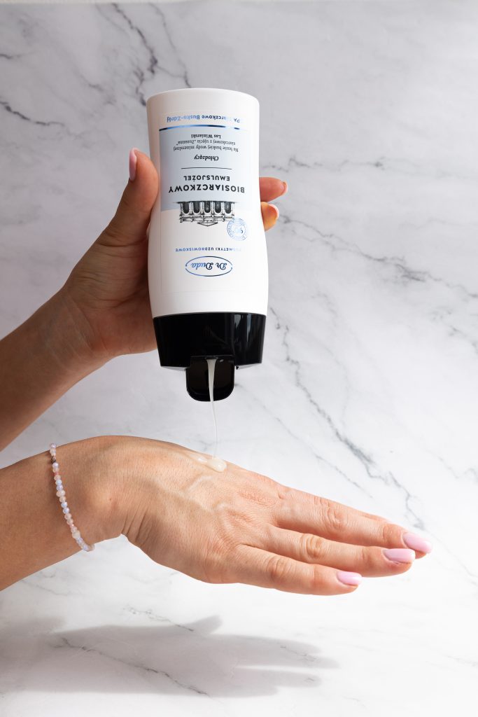 - Krok 2. Biosiarczkowy emulsjożel – wzmacnia efekt pielęgnacyjny produktu z kroku nr 1. Dodatkowo wspomaga procesy regeneracji naskórka i pozostawia przyjemne uczucie chłodzenia.